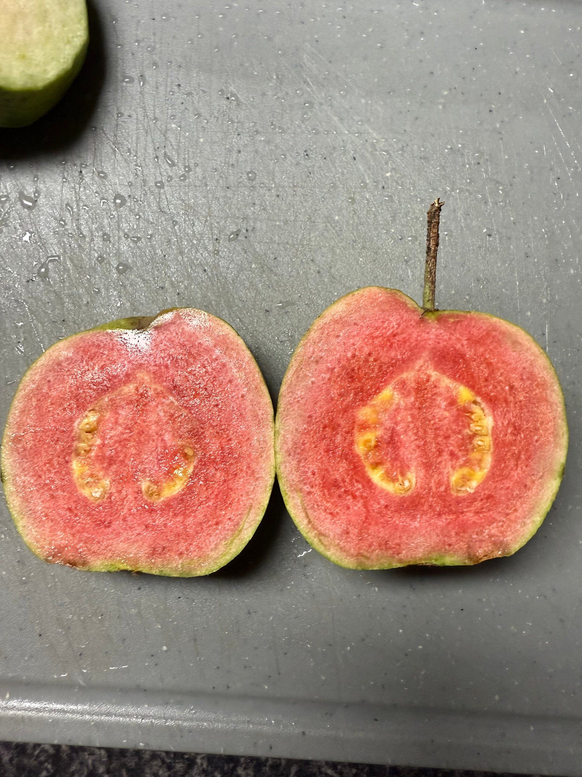 A superior selection of Hawaiian guava delicious eaten fresh or juiced. The fruit can be round to pear shaped, yellow skinned, with a delicious juicy ruby / pink flesh. A fantastic variety due to its low seed count. Once established the tree is very hardy and a prolific cropper. Guavas can be pruned to keep more compact and are perfect for growing in pots and containers.