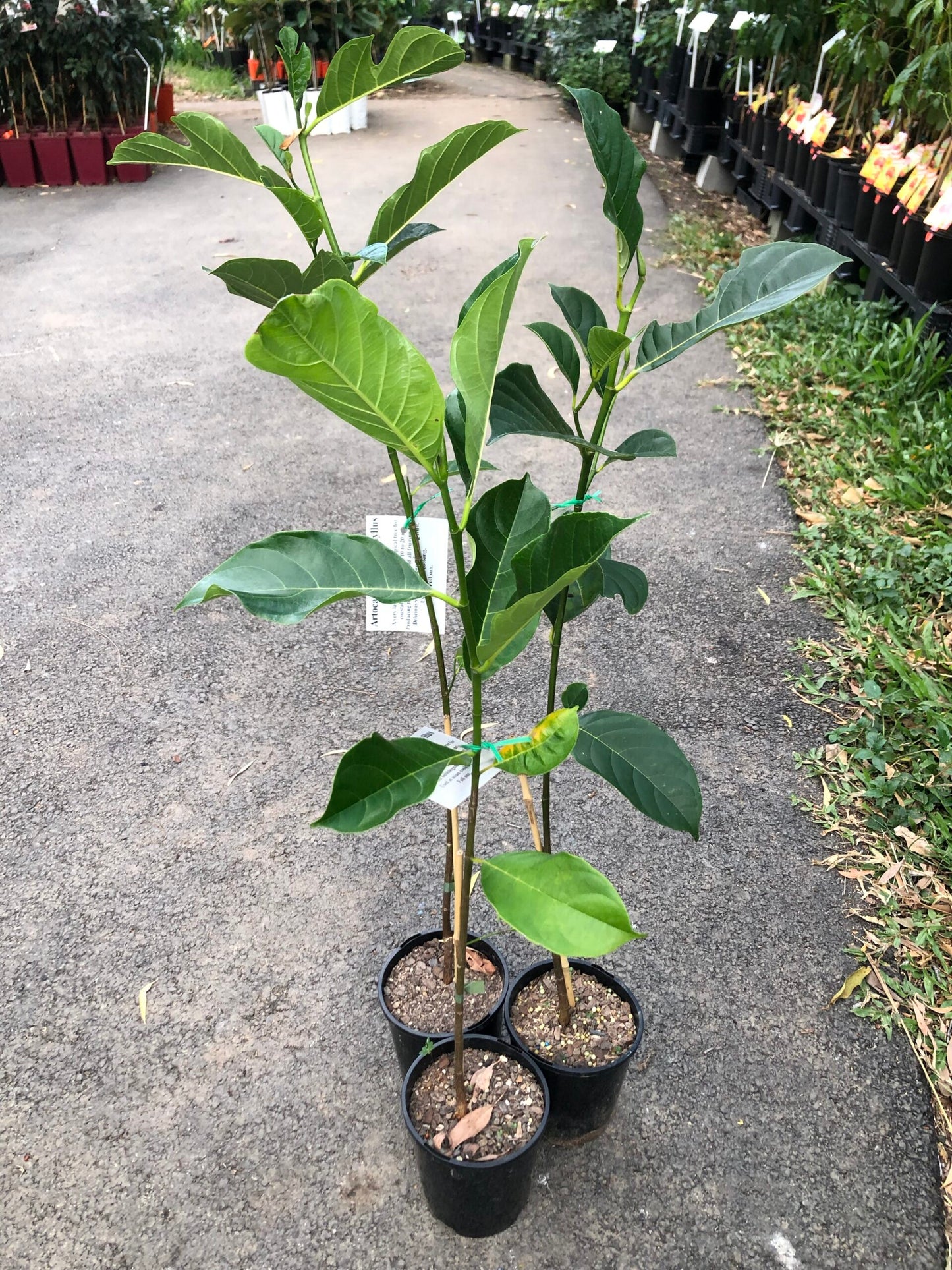 The Honey Gold Jackfruit is a medium size fruit with a crisp flesh texture and deliciously sweet. The tree is dense and can be kept small 3mx2m with pruning. The Honey gold is one of the best varieties currently available in Australia. These are seedling trees and generally will have the same fruiting and growth of the parent tree.