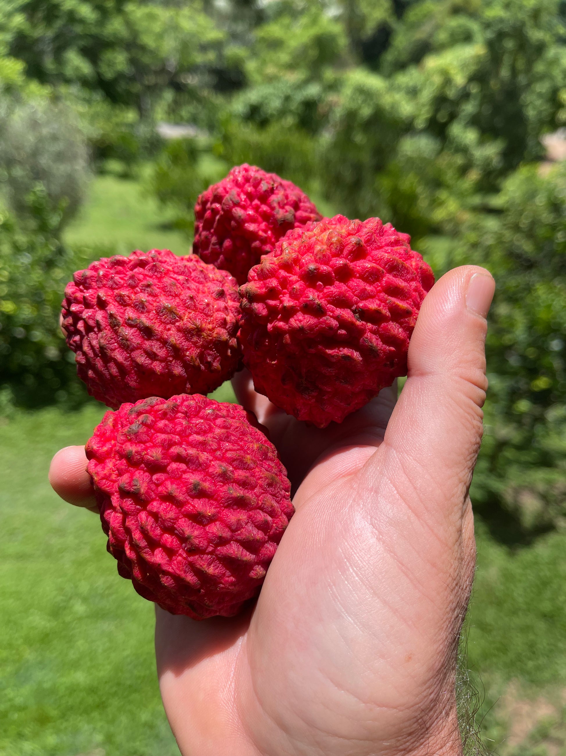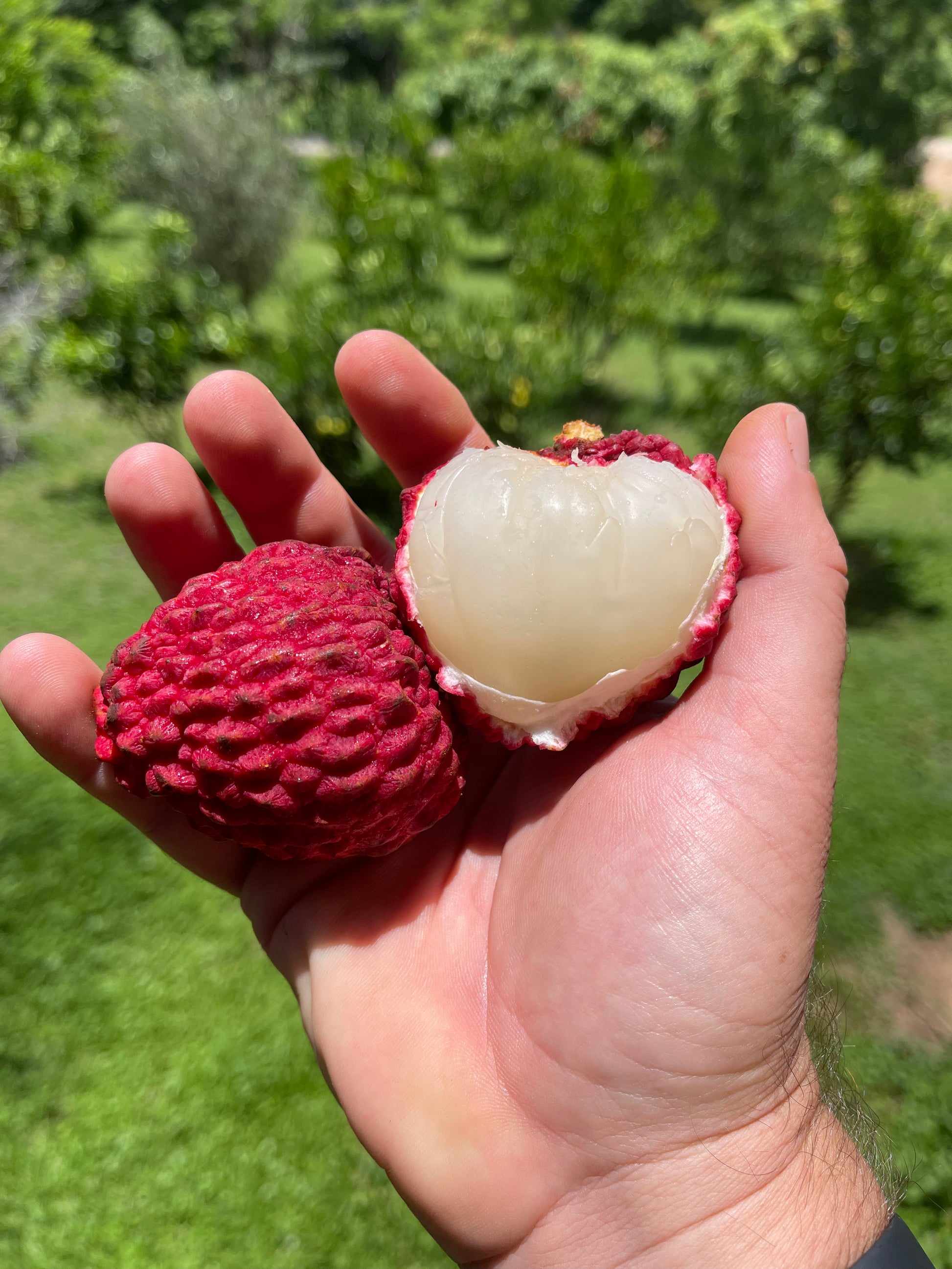 A sought after variety, this dome-shaped tree with sprawling branches and glossy green leaves produces fruit that can grow up to 120g in weight. Often called a giant lychee because of its size. The fruit is best eaten fresh.