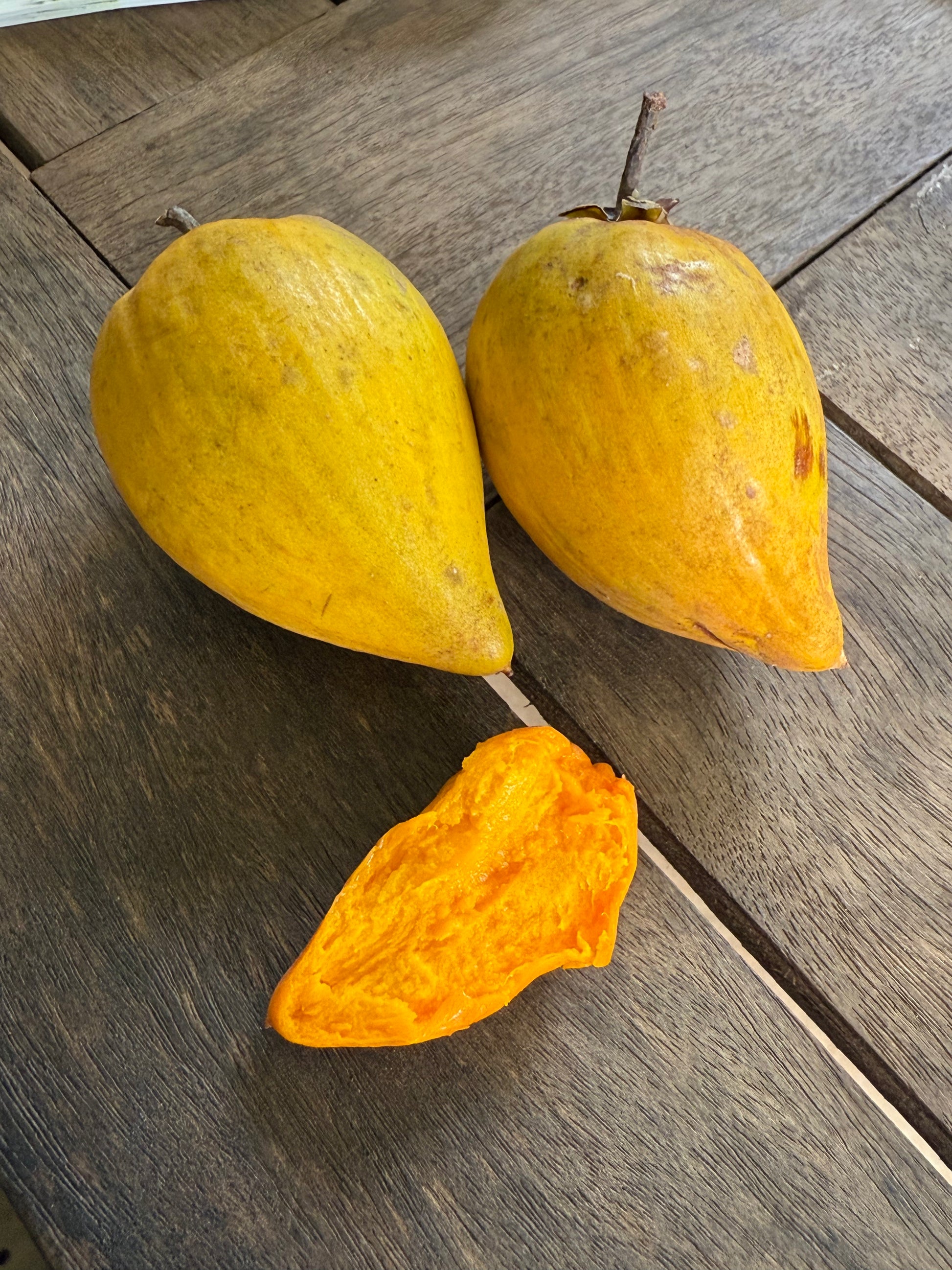 The sweet, caramel-flavoured pulp has a texture reminiscent of hard-boiled egg yolk, earning it the common name Eggfruit. The tree grows slowly and remains manageable in size, making it ideal for home gardens.